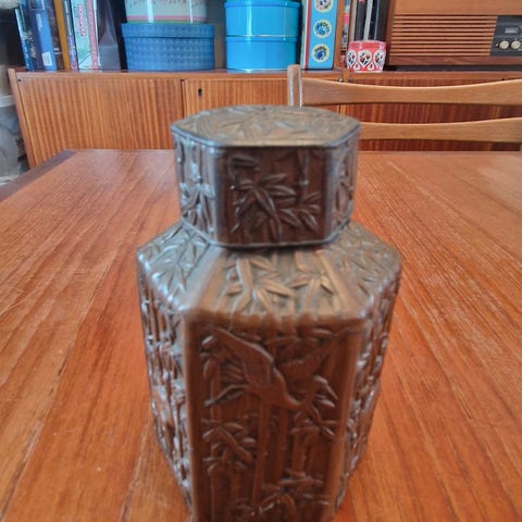 robust vase i keramikk med dekor