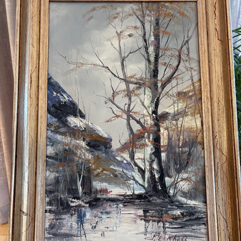 Selger et pent maleri av maleren Flemming Eckhoff. Bildet måler ca 80x65cm. Eckhoff ble født i Odense i Danmark og bosatte seg i Lalm som ligger i Gudbrandsdalen. Han døde i 2015