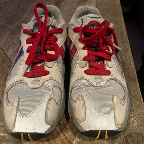 Skoene er brukt under 10 ganger. Fargen er utgått og skoene selges for ca. 120 dollar brukt på nettmarkedet.