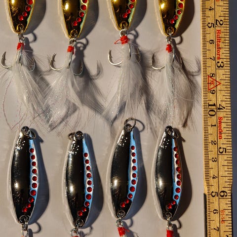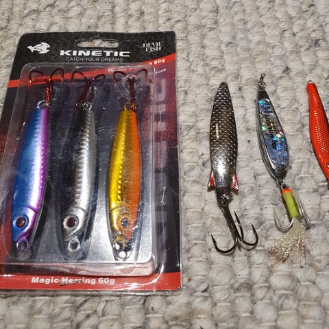 Sluk, ørret, sild, fiske, fiskeutstyr ferskvann selvlysende haspel jensen Sølvkroken