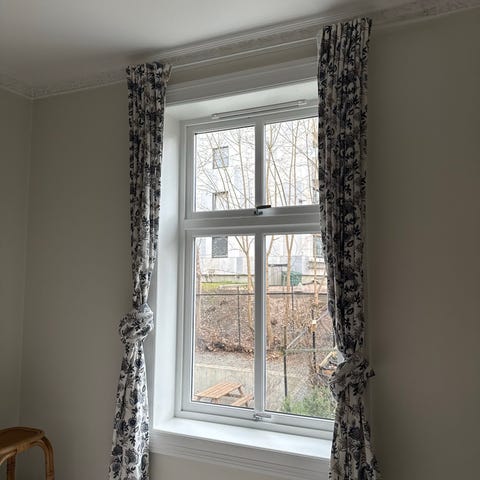 Veldig fin, sommerlig gardin med vakkert blomstermotiv.