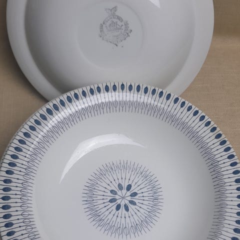 Dyp tallerken x 2 med et stilisert blomstermønster i blågrå farge fra Egersund. Vet ikke hva dette mønsteret heter.