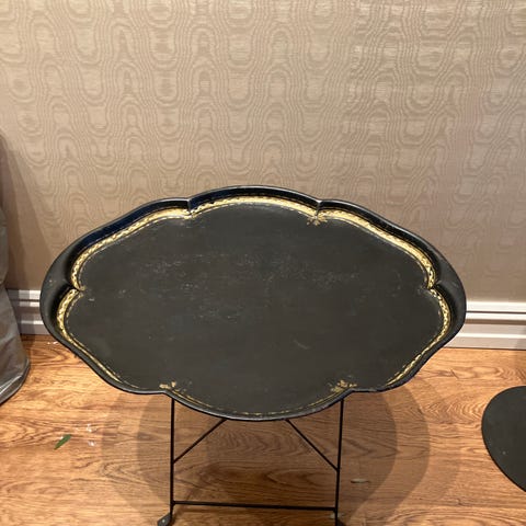 Selger et stort kinesisk eller japansk blikkbrett. Vakkert dekorert med både sommerfugler og blomster. Brettet måler 78x57 cm. Vil tro det har vært et tilhørende understell en gang, se siste bilde.