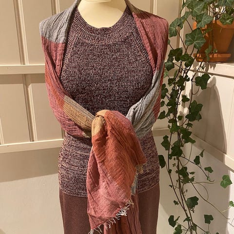 Myk og nydelig kvalitet på skjerf i lin og silke. Kr 300