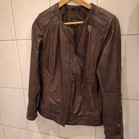 Pent brukt skinn jakke fra deep,kjøpt på Match.Nydelig mykt skinn i str L. Fargen er brun,lys brun.