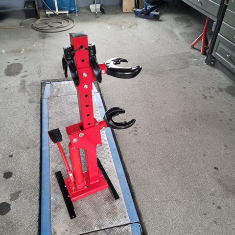 Kraftig elefantkran til løfting av bil eller båtmotorer. Kranen er sammenleggbar for enkelt transport.