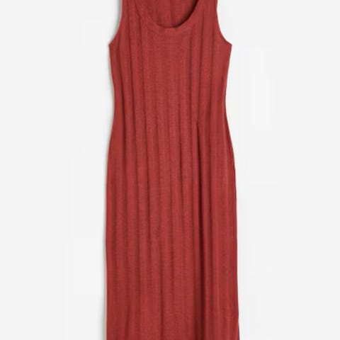 Fra H&M divided, str 32. Oransje-rød. Glidelås bak. Polyester. Pent brukt.