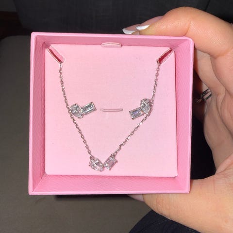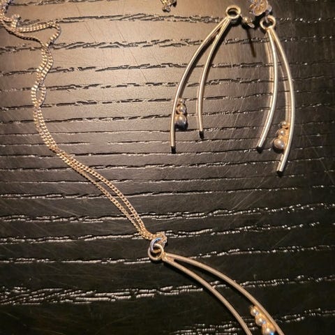 Vakkert halskjedet og øredobber i sølv . Stemplet 925. Brukt en gang.