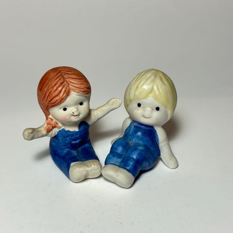 Selger 2stk. trolldeigfigurer, som kan henges på vegg.