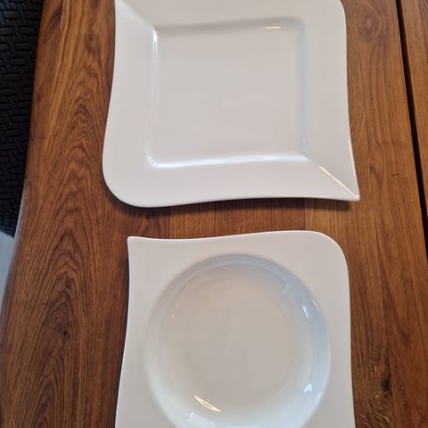 2 stk fra Queens 27 cm I diameter. En med gullkant merket MARIE og en uten gull merket ANTOINETTE. Selges for 60 kr pr stk. Ubrukt. Tar vipps