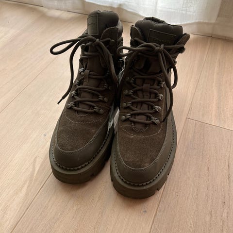 Selges billig! Nærmest ubrukte sko fra stella McCartney selges. Perfekte vår og høstsko. Smal og veldig fin passform. Normale i størrelsen, jeg bruker 38-39 og de passer akkurat. Brukt kun et par ganger, ingen slitasjemerker og fremstår som ubrukte. Kjøpt på Egertorget ifjor for 5299 kr, selges til høystbydende. Selges med skoeske og dustbag. Kan sendes med helt hjem eller hentes på Bjerke, Leirsund eller Lillestrøm.