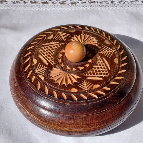 Smykkeskrin rund fasong. Tre krukke / treboks med lokk. Mål: b: 14,5 cm, h: 7 cm
