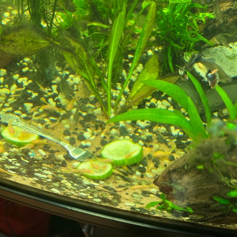 Stor acvarium med fisk og alt utstyr med mat til et år