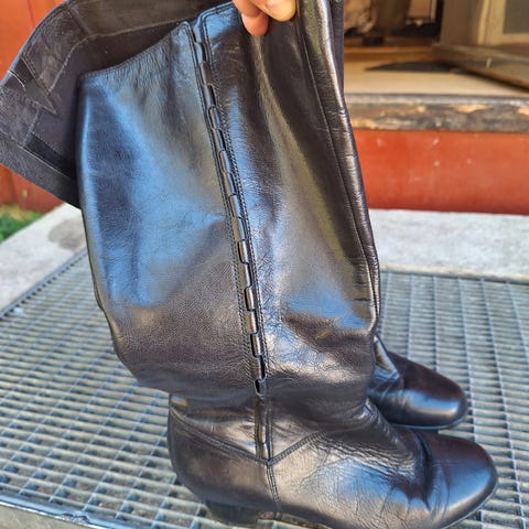 Hei super vakre skinn støvletter med nittet såle til den heldige med litt tynnere legger enn meg. Litt overivrig øyeblikk i min graviditet så håpet jeg de skulle passe etterpå, men dessverre ikke. Kostet nye 2500,-