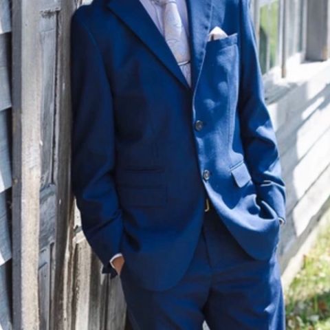 Meget pent brukt, kanskje tre ganger. Ble brått for liten. Smal modell. Jakke str 42, bukse str 44.