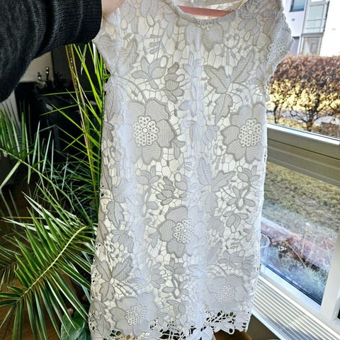 Blondekjole (m/underkjole) til jente, offwhite, str. 8 år (126-131 cm).
