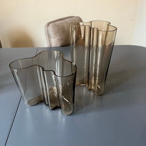Den klare har jeg også hatt i et par år. Heller ikke den har vært brukt som vase - har bare stått i et vindu. Også denne er ute av produksjon og sjelden å få tak i.