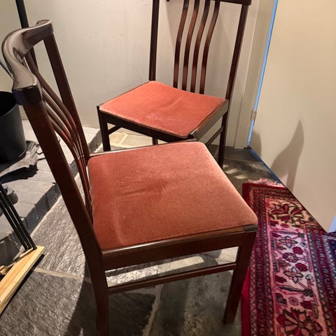 Fire spisestue stoler gis bort. De er kjøpt hos Mestermøbler. De er fine i trekket og litt mørkere farge enn hva som fremkommer på bildene. Må hentes på Tverlandet.