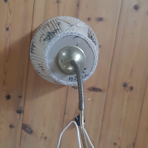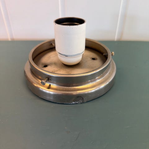 Gammel vegglampe med porselens sokkel og porselens kontakt
