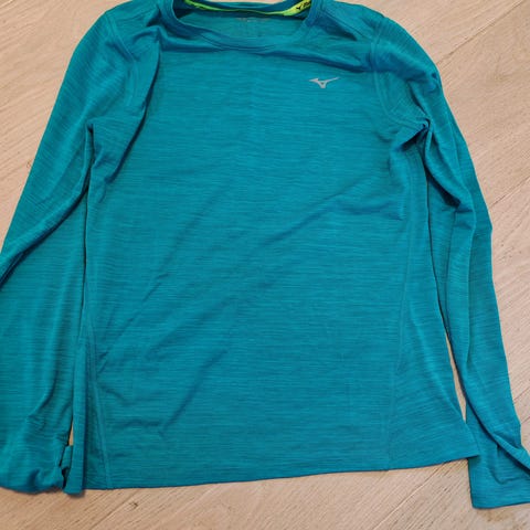 Lite og pent brukt teknisk genser fra Mizuno. Midjemål 92 cm. Farge lys blå. Fremstår som ny. Kommer fra røykfritt hjem. Kan sendes, kjøper betaler frakt.