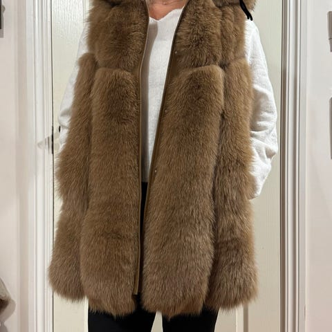 Svært lite brukt lys brun kaninpels, som ny. Supermyk og god å ha på seg, med hette passer en str. S-M. Kan sendes mot at kjøper betaler frakt, eller hentes på Tolvsrød i Tønsberg eller Høvik i Bærum.