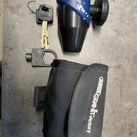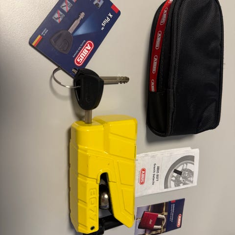 Helt ny og ubrukt sykkellås til skivebremser selges fra konkursbo. Kan hentes etter avtale eller sendes i posten til 70 kr for frakt.