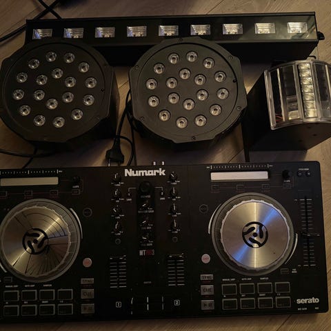 2 x JBL EON715 aktive høytalere med 1300 watt effekt og innebygd 3-kanals mikser i hver høytaler.