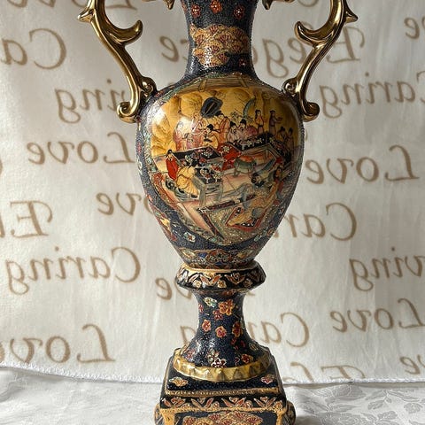 Vakker Satsuma urne høyde 27 cm, bredde 22 cm på midten. Fra århundreskiftet 1800/1900. Ingen skader