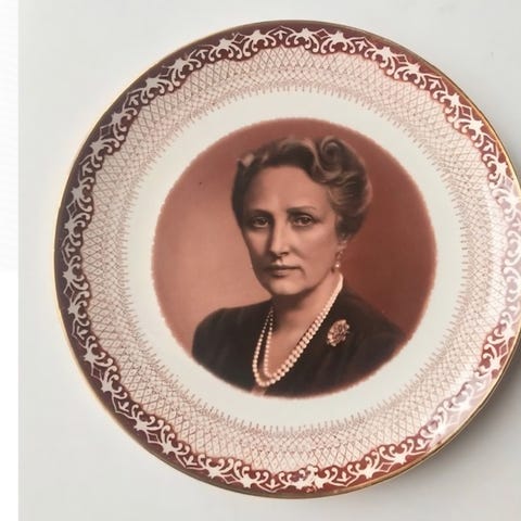 Det kan henges på vegg som bilde eller brukes som fat. 23 cm diameter. Pent og helt. Litt krakelering på baksiden. Kan sende.