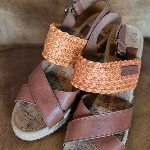 ECCO Sandaler i størrelse 41. Sandalene er laget av brunt skinn med justerbar spenne. De har en gummisåle med godt grep. Passer til daglig bruk og varme værforhold.