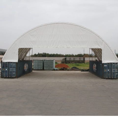 Hardlife har oppgradert conteineroverbyggene, og nå får du dette 40 ft teltoverbygget med en bueavstand på 1,2 meter mellom hver bue. Dette gir en enda bedre stabilitet og styrke for vind og snø til containeroverbygget.