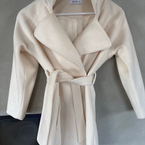 Superfin hvit-besh kåpe selges. Den er helt ubrukt og med prislapp på. Funker fint som gave eller andre ting. Kanskje til noen som liker å pynte seg litt. Vil kalle det en «by jakke». Den står at er i str. 152 men passer fint til str.158-164 også.