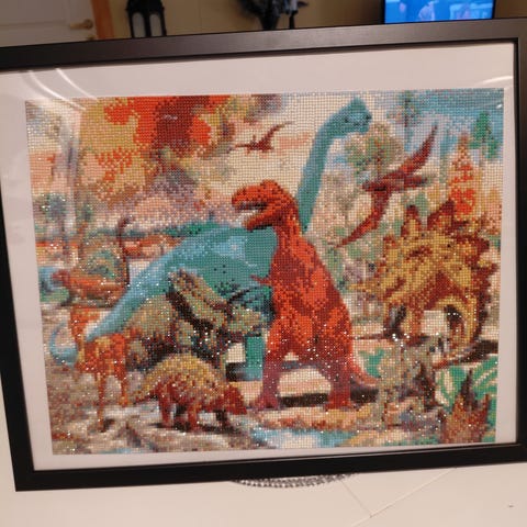 Pakke innholder forlimet mønstret nummerert kanvas, voks, firkant perler, penn og kar.