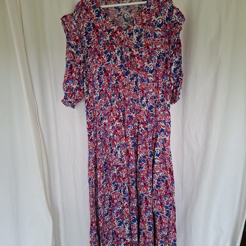 En fin kjole, mønster: blomster, en fin og behagelig utførelse, med lommer, merke GREENPOINT, størrelse S/M. Kjolen har glidelås på baksiden.