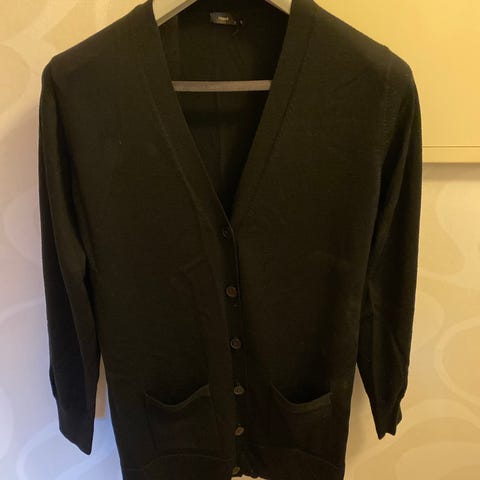 En grå kardigan, 100% bomull, merke MAISON SCOTCH, størrelse 1, men romslig/oversized I størrelse som tilsvarer M.