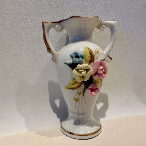 Blomstervase i porselen ca. 30 cm lang. Pen.