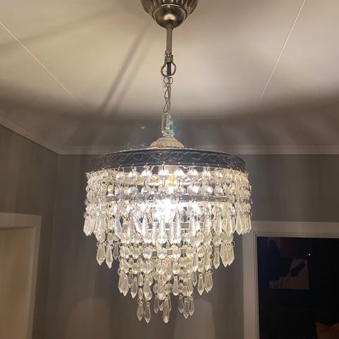 Brukt Classisk prisme tak lampe som er 80 i høyden og ca. 32 bredden. Tilstanden er fin😊