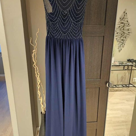 Sort maxi- strikkekjole med lining i nudefarge fra DKNY. Str. M. Shell: 84% rayon, 16% bomull. Lining: 81% nylon, 19% spandex. Knitted in U. S. A. Kvalitet. Røyk- og dyrefritt, Høy nypris. Sitter pent. Kun prøvd. Som ny. Selger kr.1.500,-. Pris er satt.