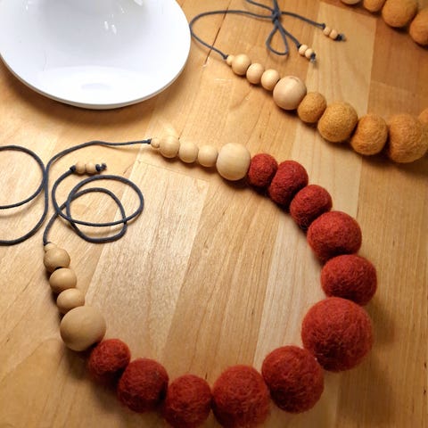 HALSKJEDER i filt ullkuler. SØLV LÅS.