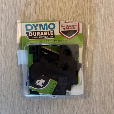 DYMO D1 tape sort på hvit 24mm byttes i 19mm tape
