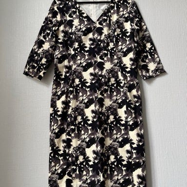Bomullskjole med 3/4-lange ermer. Marimekkolignende mønster.