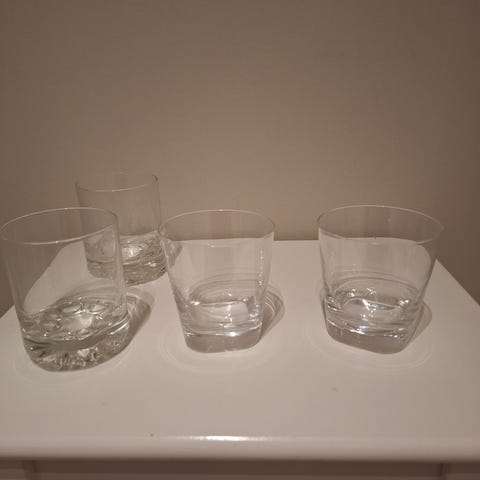 Vakre og slepne krystallglass av gammel årgang. Øl/vinglasssene er solgt!!! Likørglass, 12 stk. 9cm høy, kr 80,-pr.stk. «Snapseglass», 11stk. 8,5 cm høy, kr 60,-pr. stk. Selges samlet kr1300,-. Må hentes!