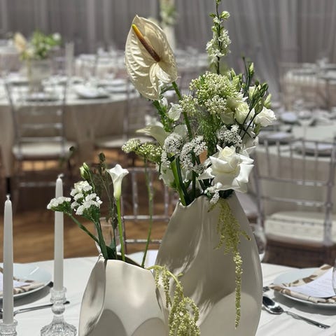 Stilrent, krystall vaser, 4 lave, fine til bryllup, konfirmasjon, sommerfest, jubileum merke Schou Zwiesel. Håndvask. Brukt i en konfirmasjon, pakket i orginalen emballasje, fremstår som nye. Lave er 19 cm høye, 16,5 i bredde.
