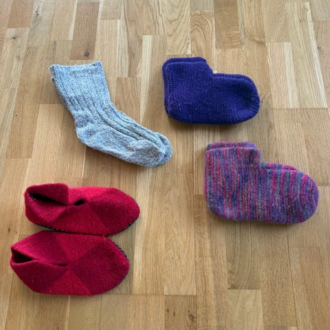 Pent strikket votter i ren ull, noen i alpakka. Fin kvalitet. Hjemmestrikk.