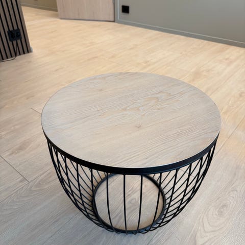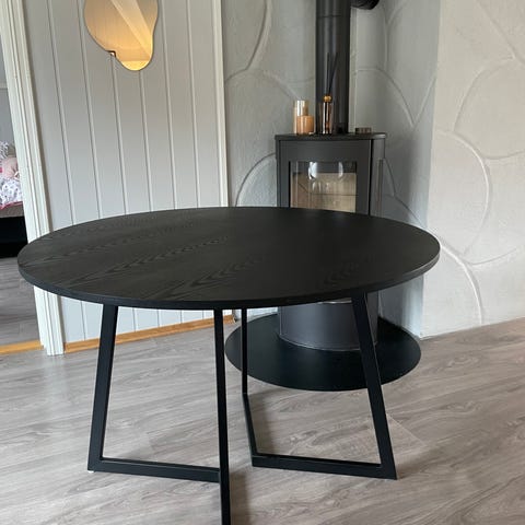 Very nice and compact oak/steel dining table. 120cm diameter solid oak.