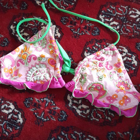 Selger denne flotte bikini toppen i flotte farger, rosa og gul/ grønne toner. Størrelse 36