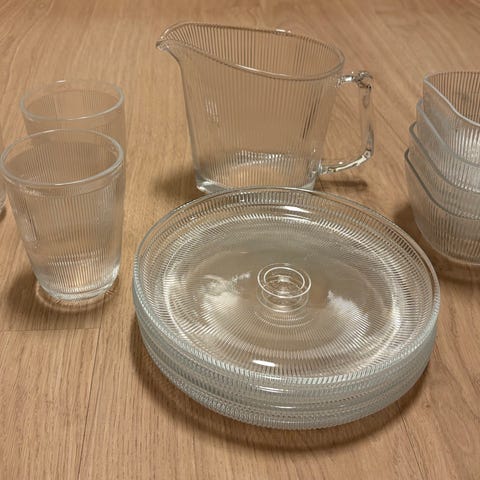 Karaffel 28 cm høy med 5 glass 11,5 cm, kjøpt i Palestina