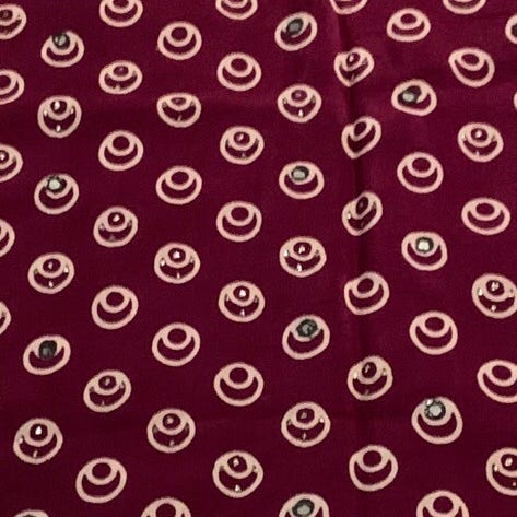 Brokade, vendbar, rød med svart, svart med røde blomsterranker.