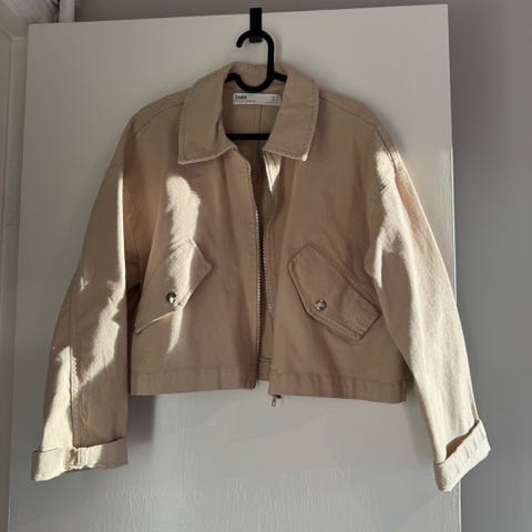 Beige jakke fra Zara i størrelse xs. Denim.