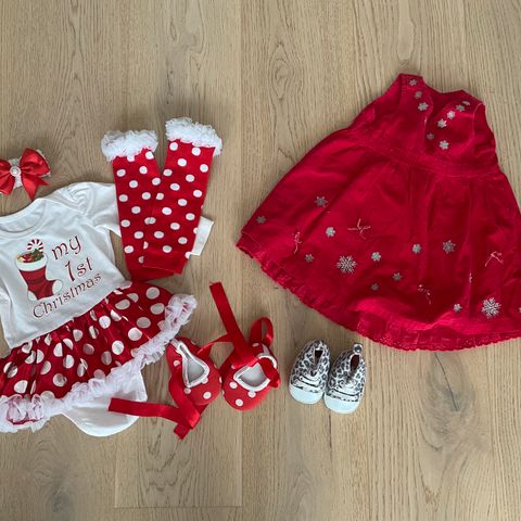 3 røde julekjoler med 2 strømpebukser Str 50-56 ❤️